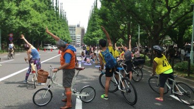 自転車と楽しむストリートヨガ
